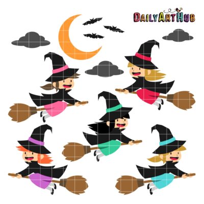 Halloween Cute Witches Clip Art Set