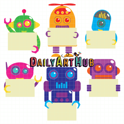 Robot Messages Box Clip Art Set