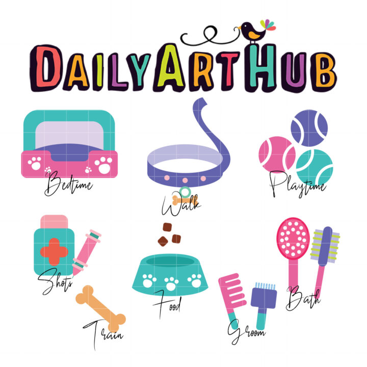 Each separate clip art in this set is included in both high quality 300dpi PNG format with transparent background and also JPG format. This set also includes each art in SVG format perfect for most cutting machines.
