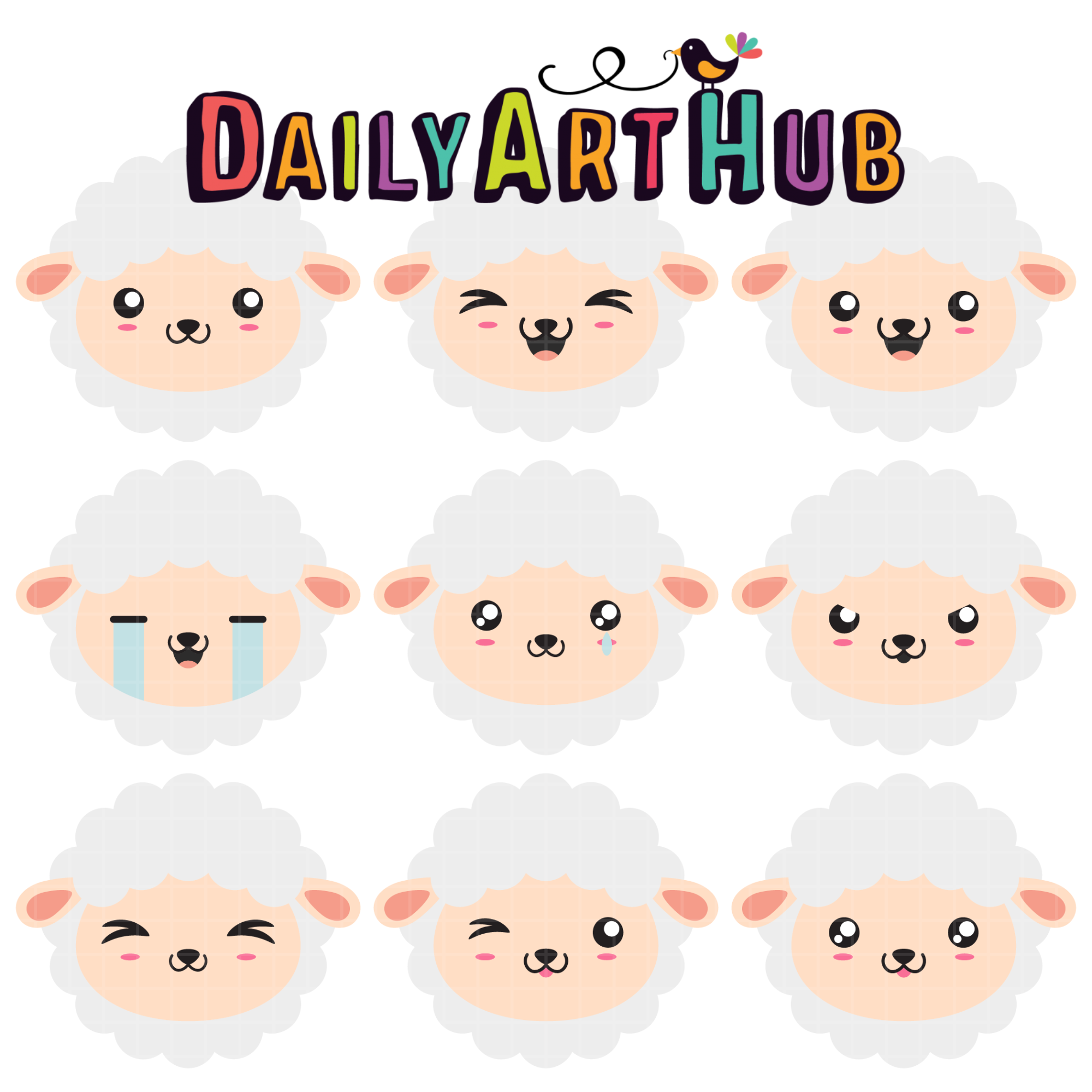 Kawaii Sheep Faces Clip Art Set
