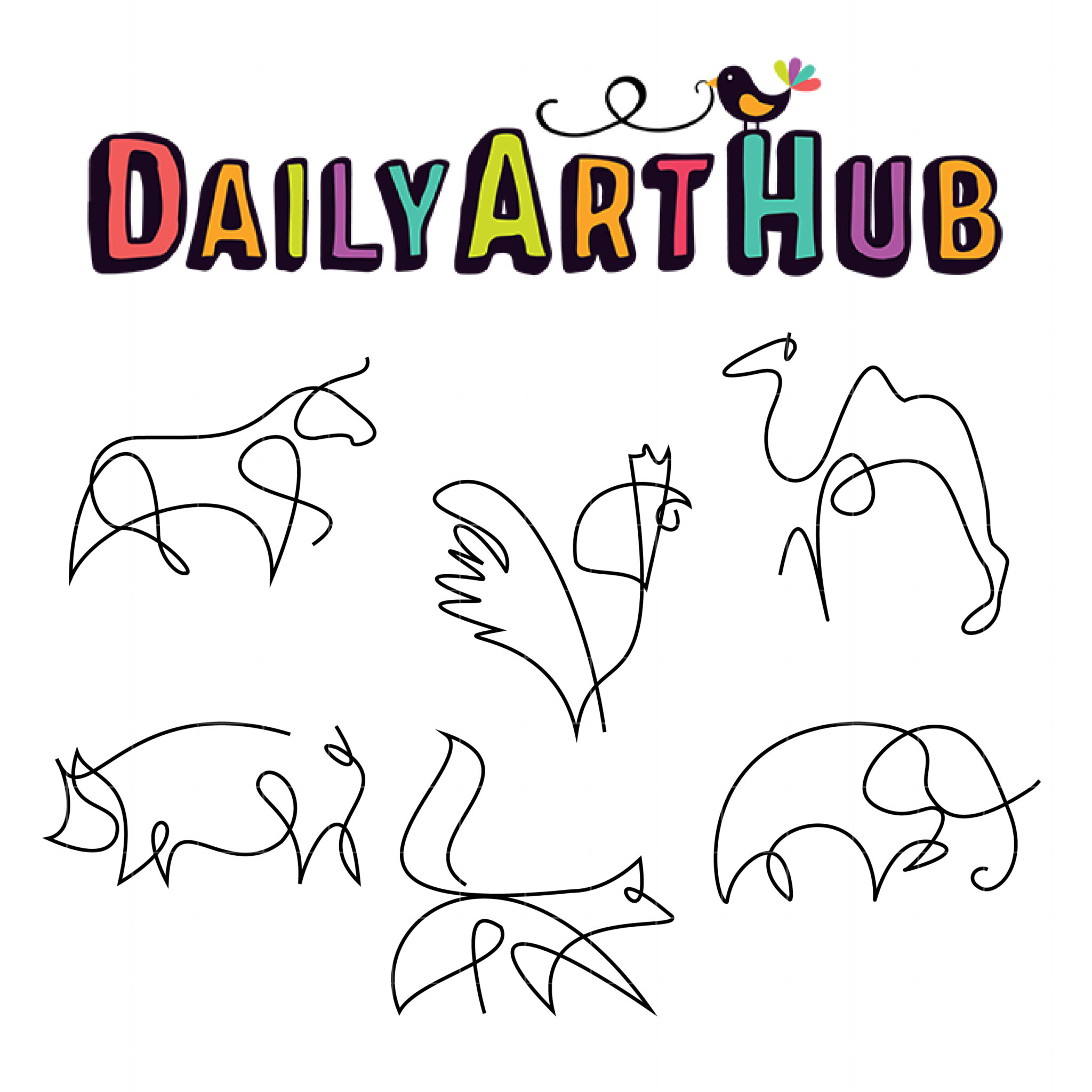 One Line Animal Drawing Clip Art Set