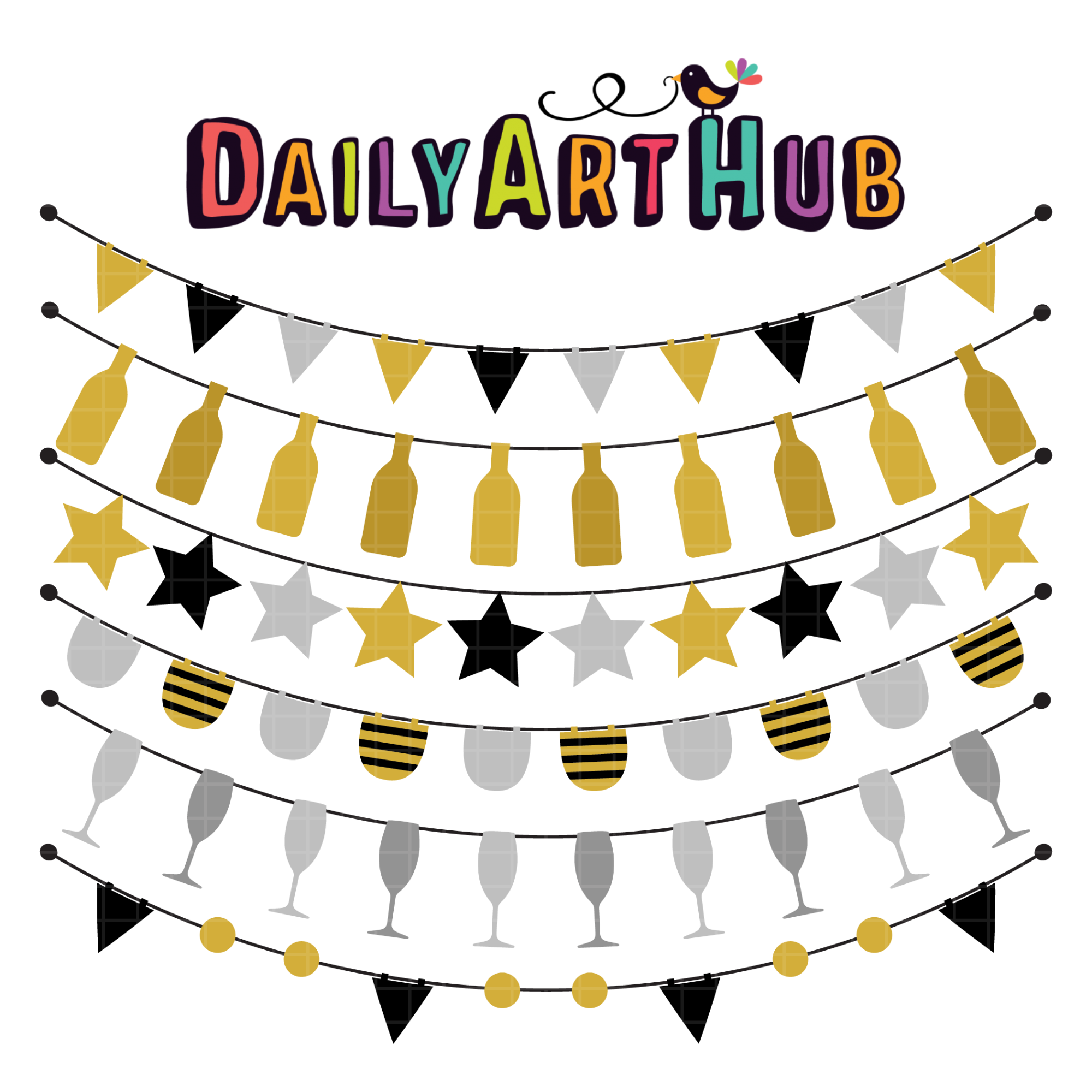 Black Silver And Gold New Year Buntings Clip Art Set