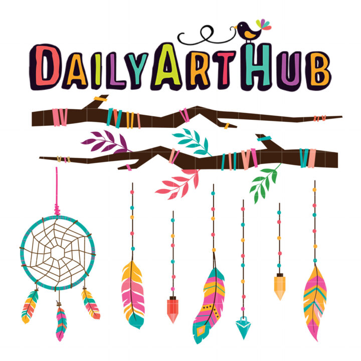 Boho Feathers and Branches Clip Art Set