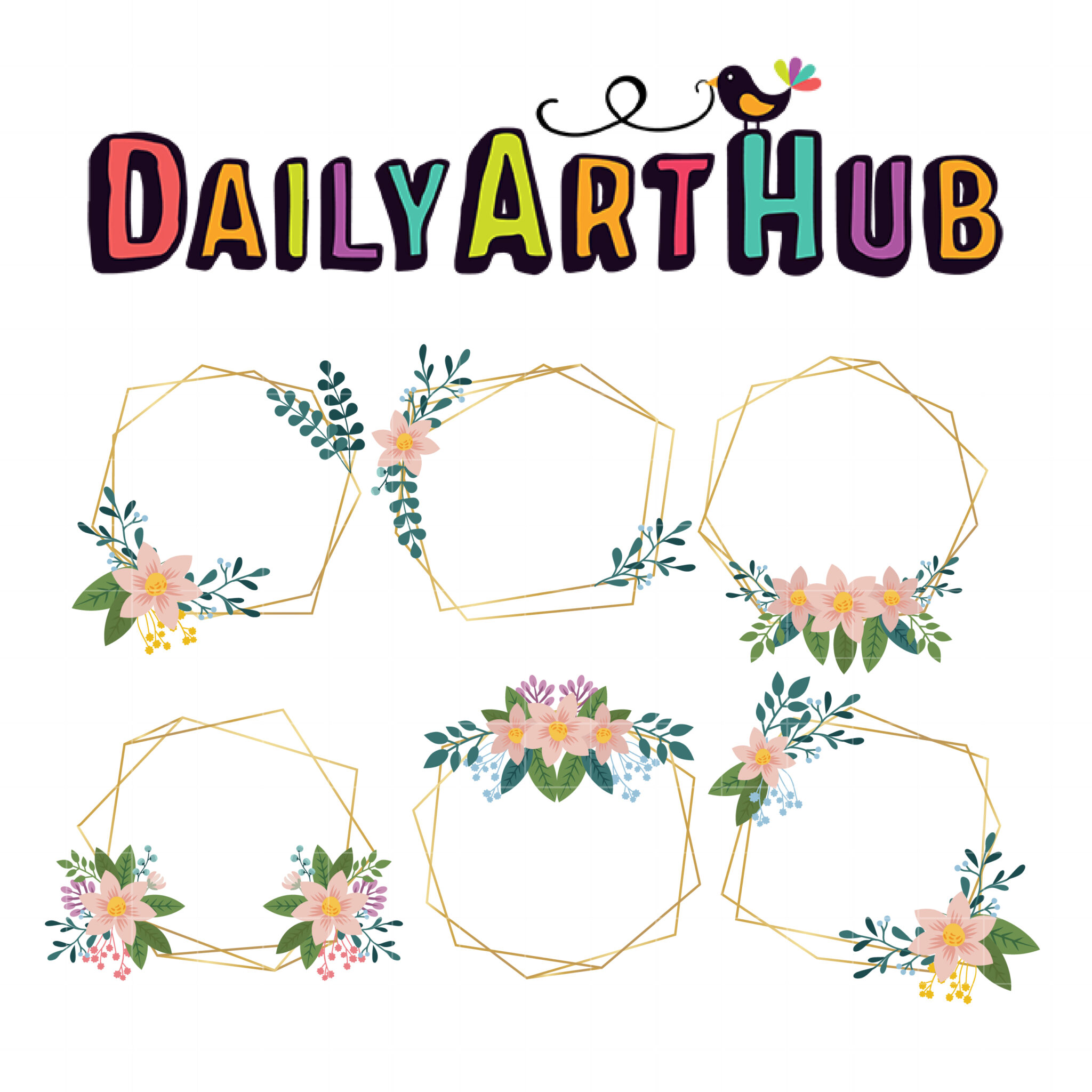 Polygon Floral Frame Clip Art Set