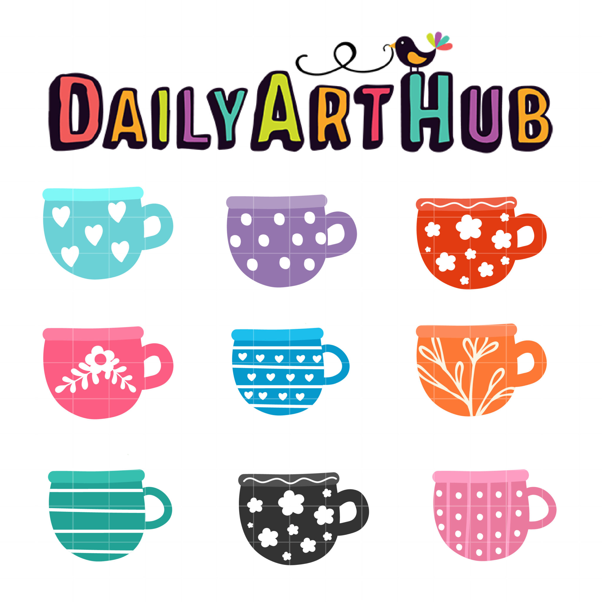 Cup Pattern Design Collection Clip Art Set