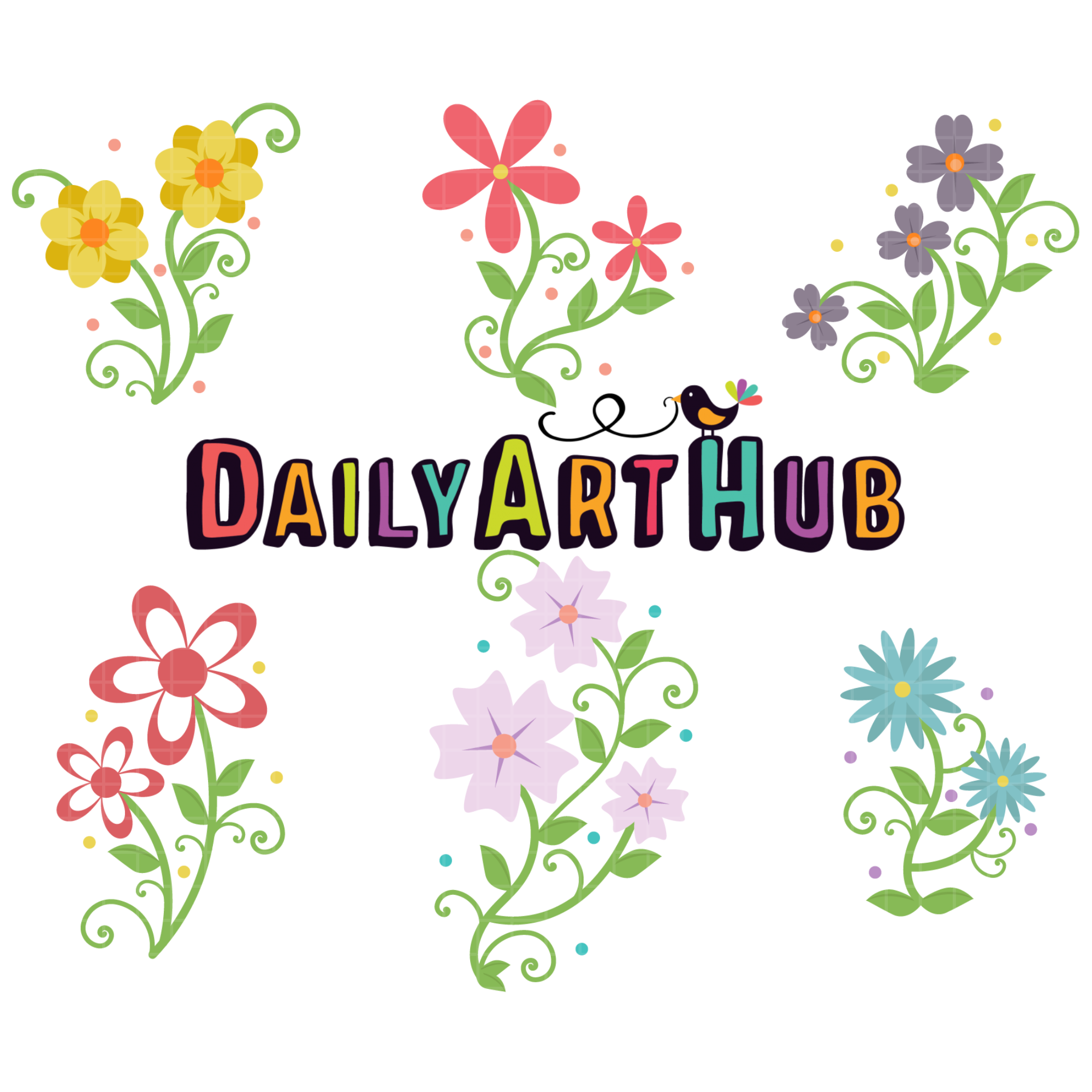 Curly Florals Collection Clip Art Set