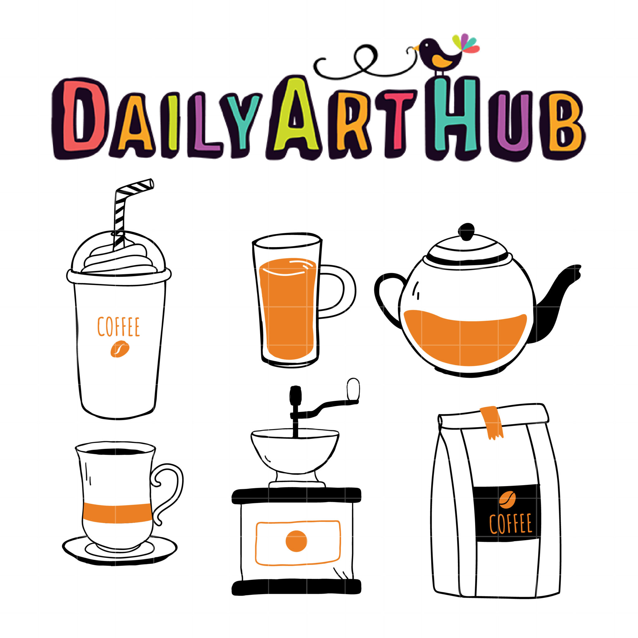 Doodle Coffee Drinks Clip Art Set