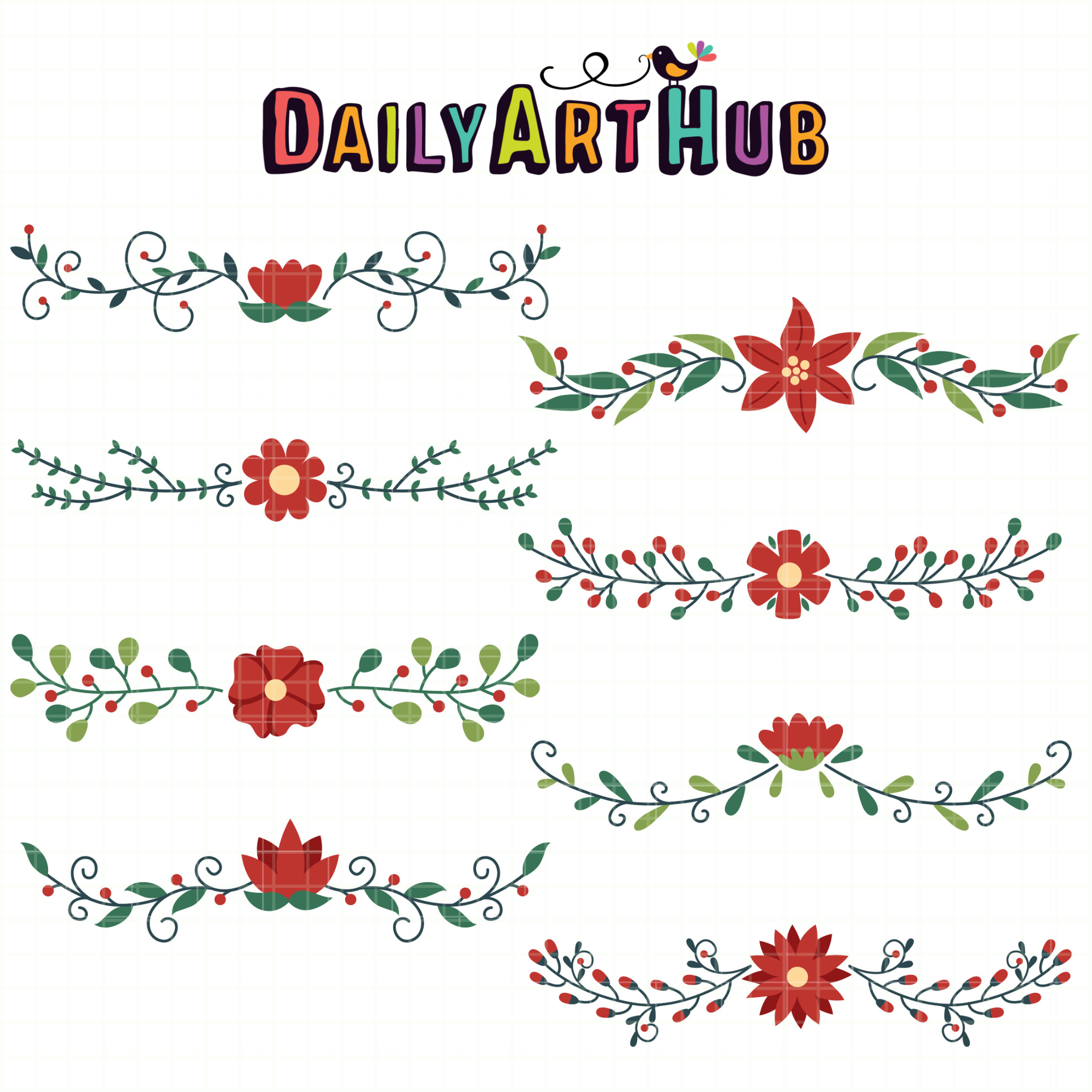 Holiday Flora Borders Clip Art Set