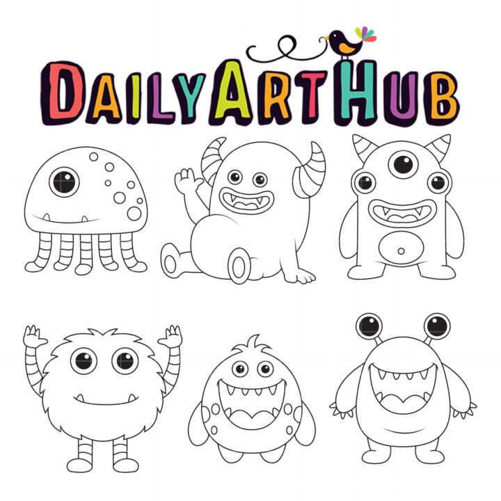 Cute Monster Outline Coloring Clip Art Set