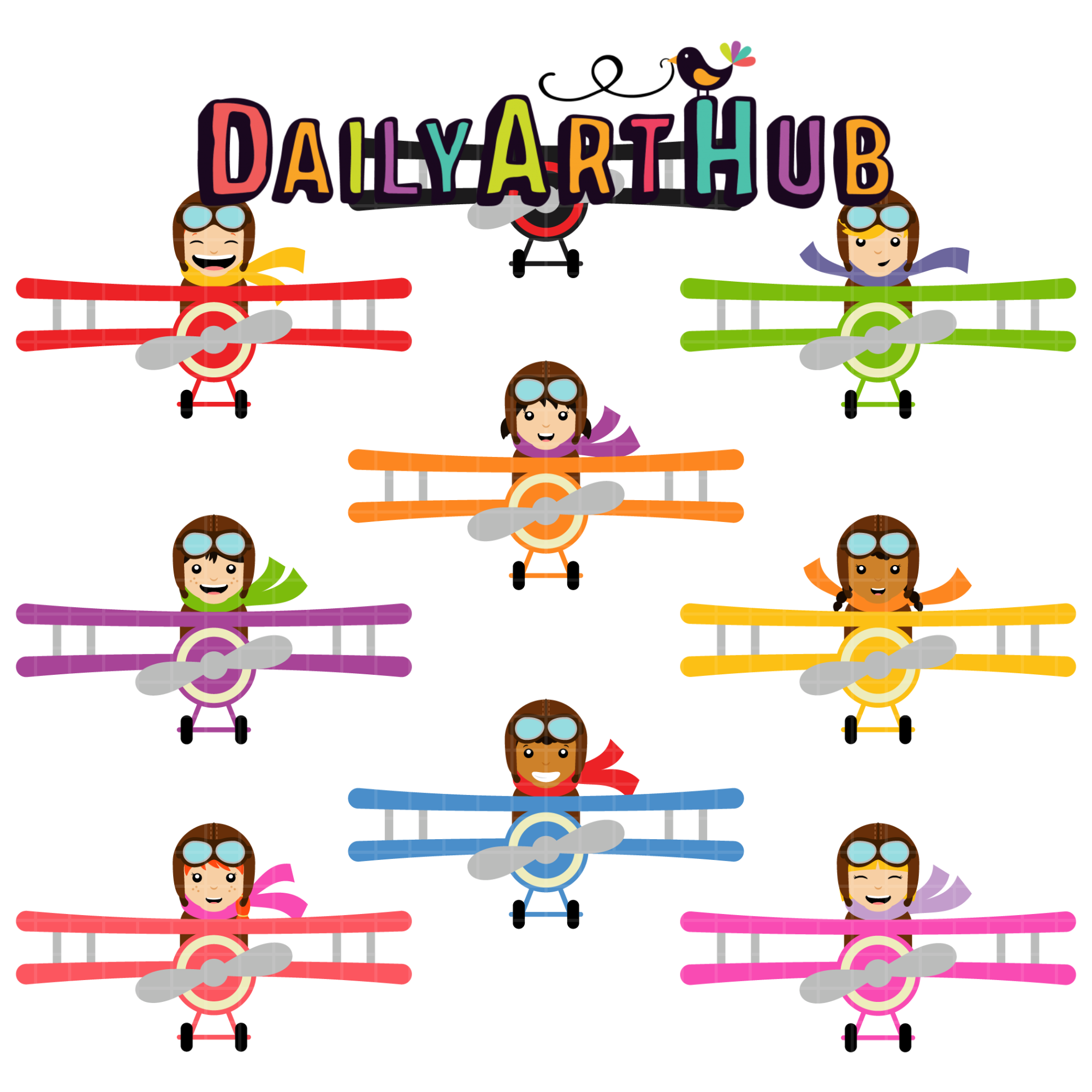 Flying Kids Clip Art Set