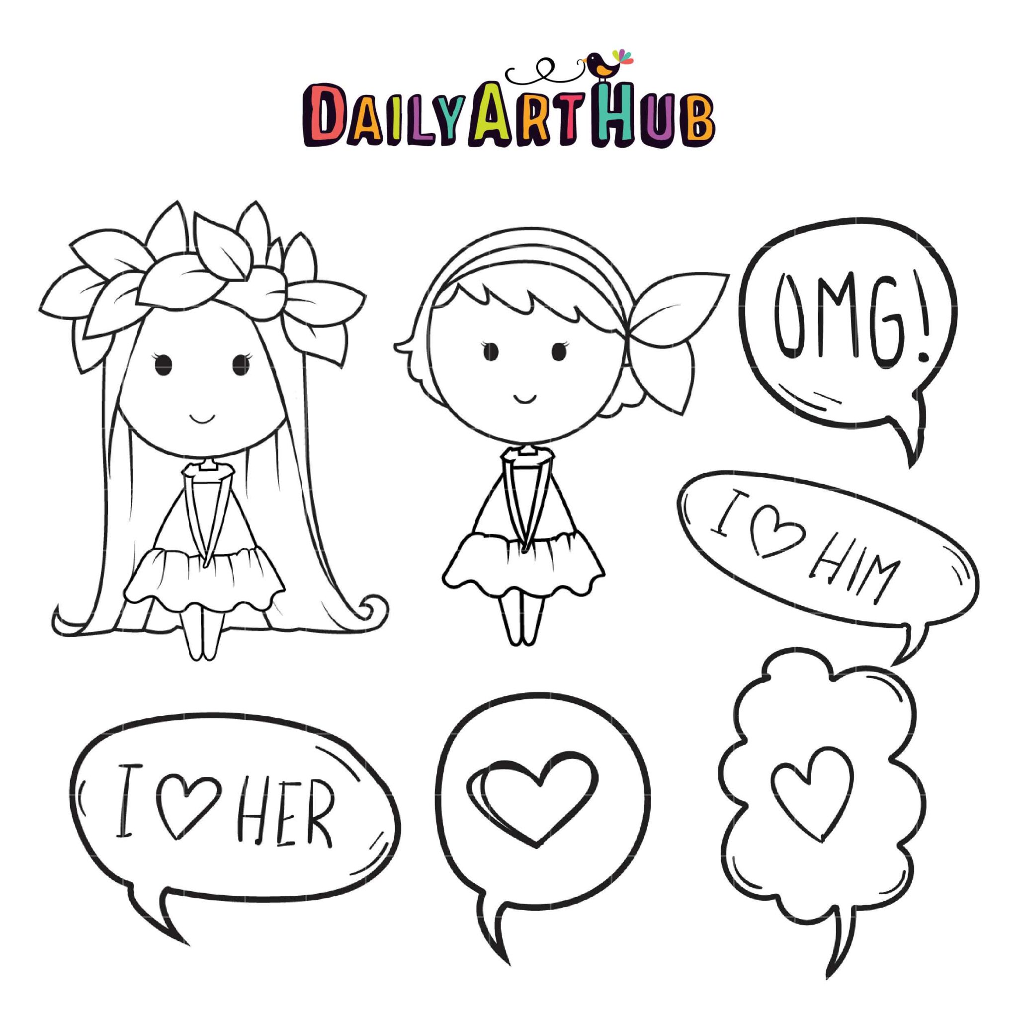 Cute Dolls Illustration Clip Art Set
