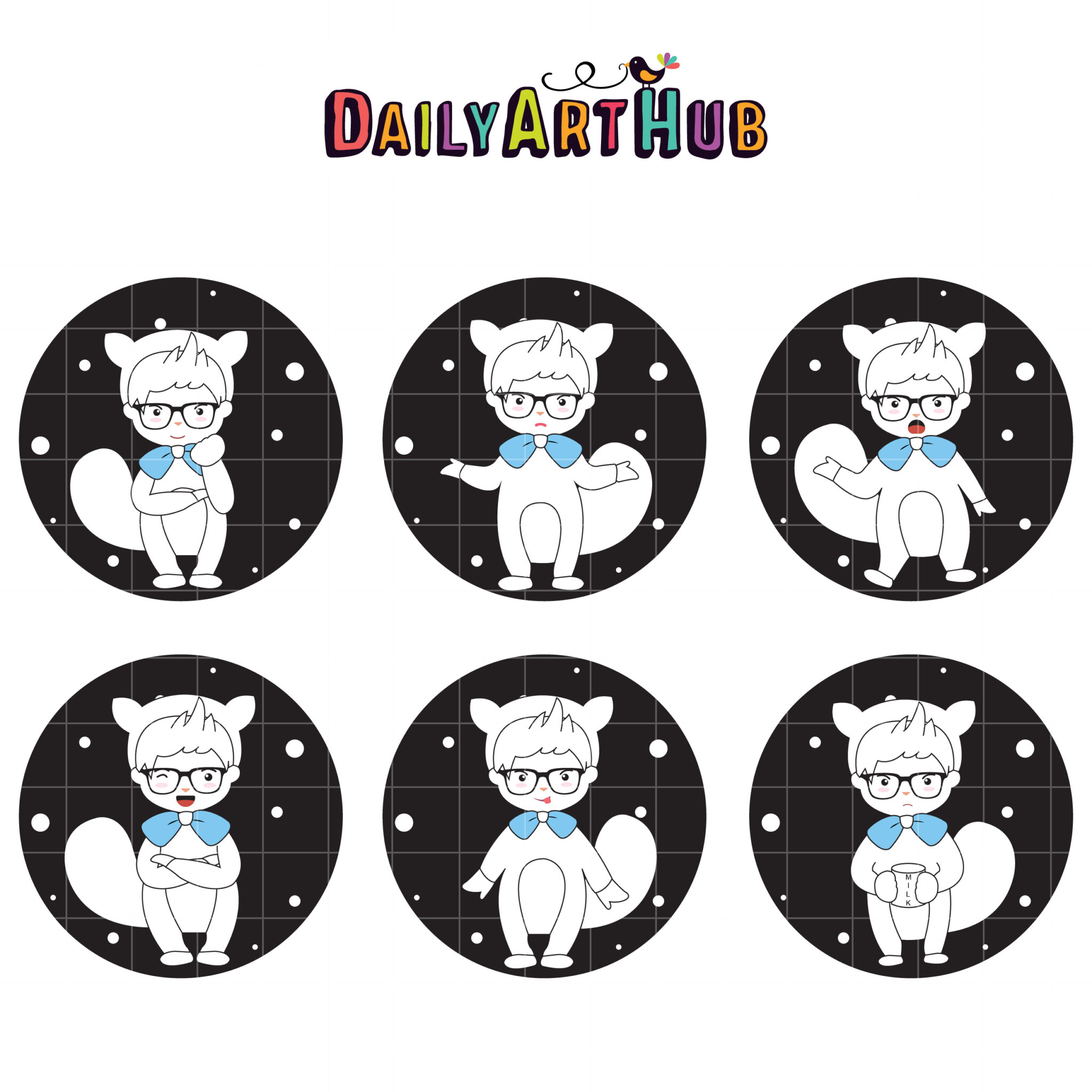 Kawaii Doodle Boy Clip Art Set