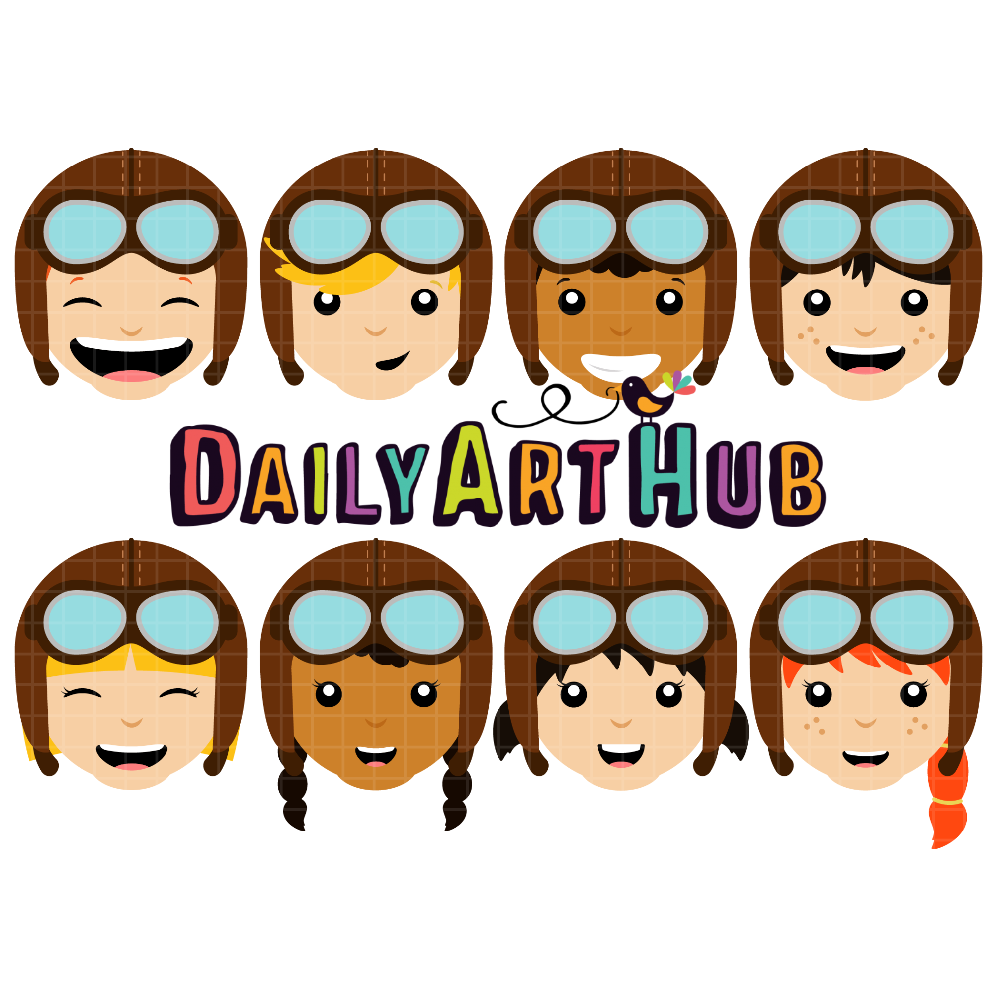 Vintage Pilot Kids Clip Art Set
