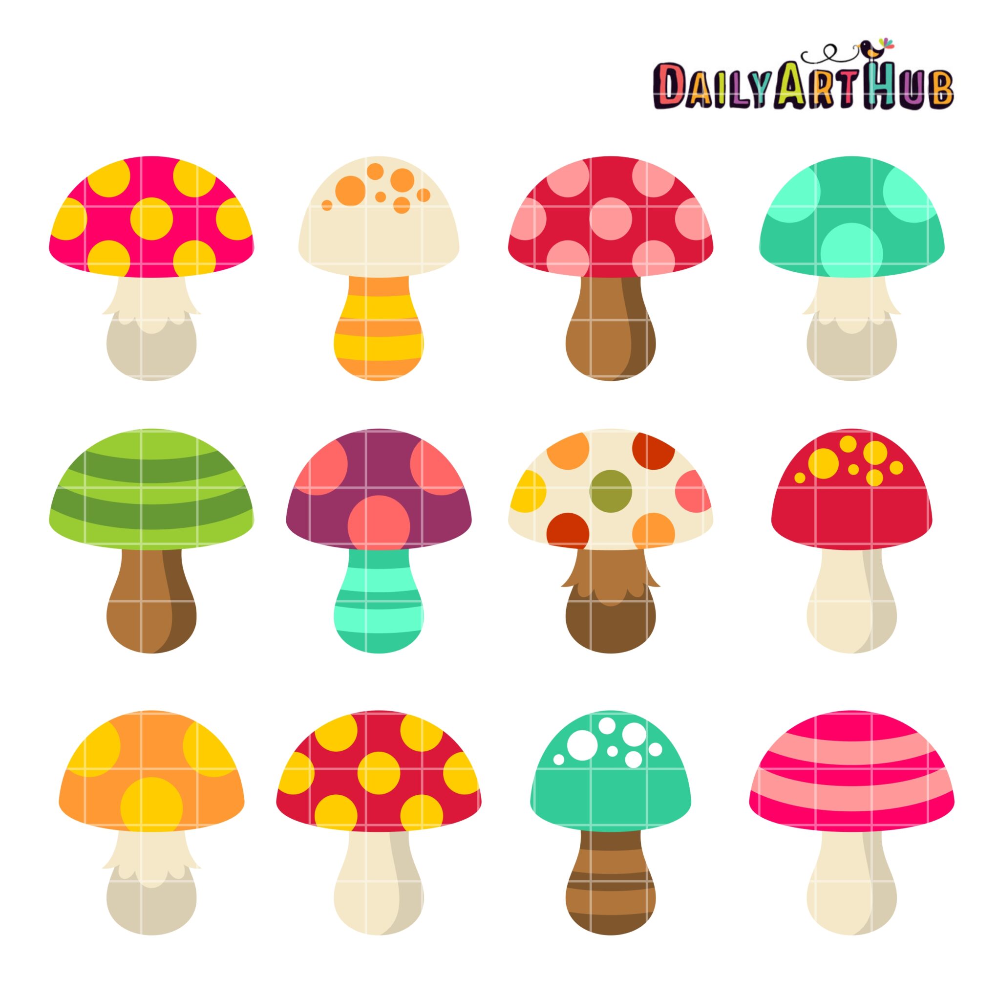 Cute Mushrooms Clip Art Set