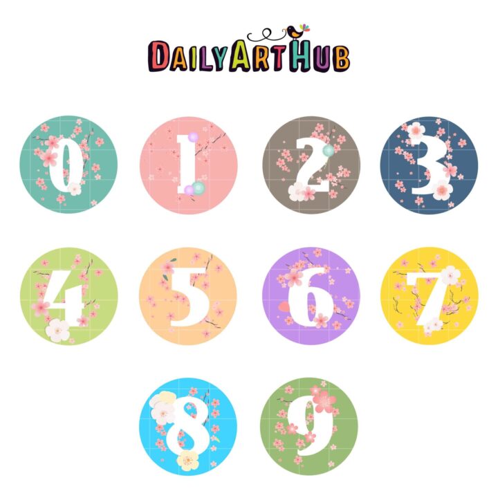 Flowery Numbers Clip Art Set