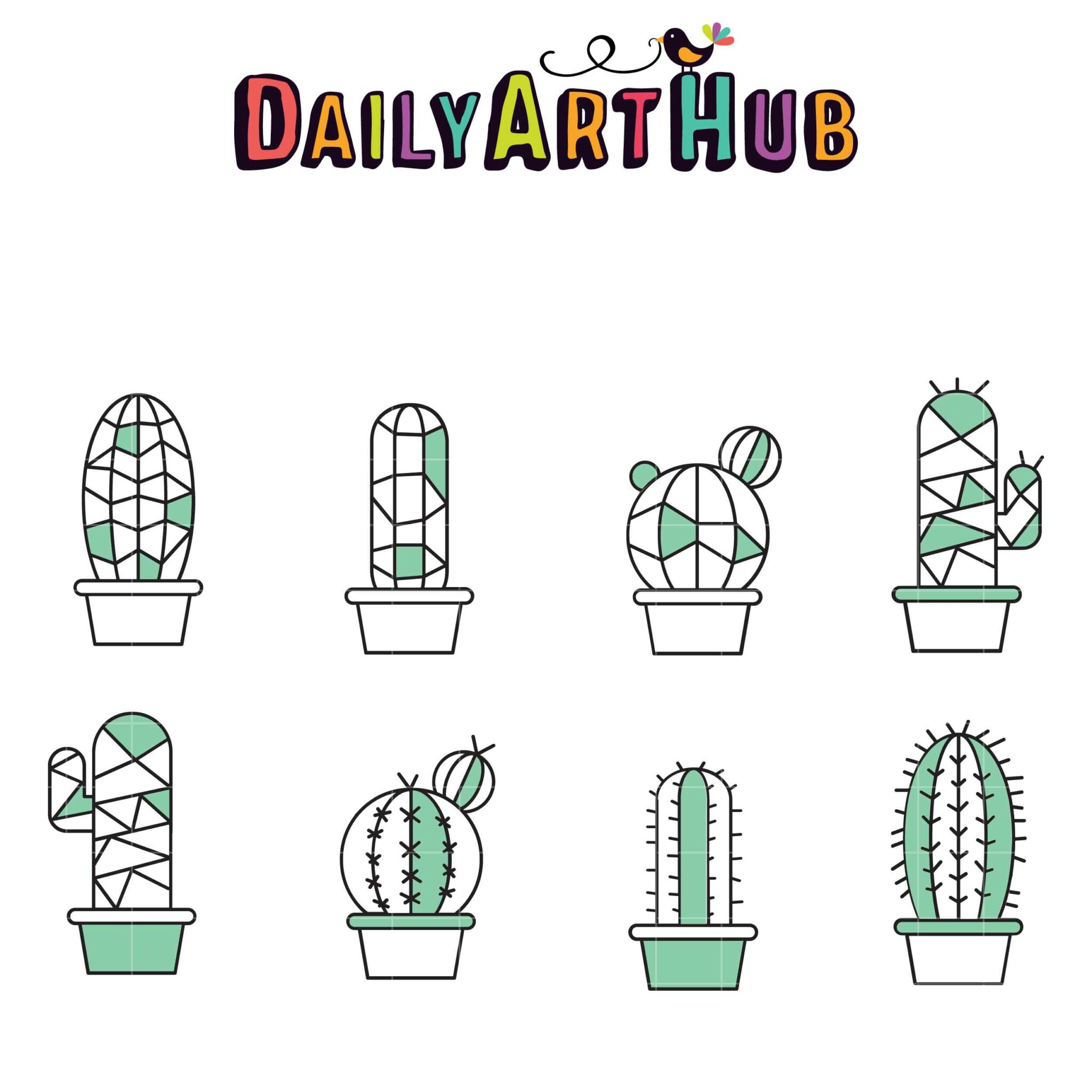 Geometric Cactus Clip Art Set