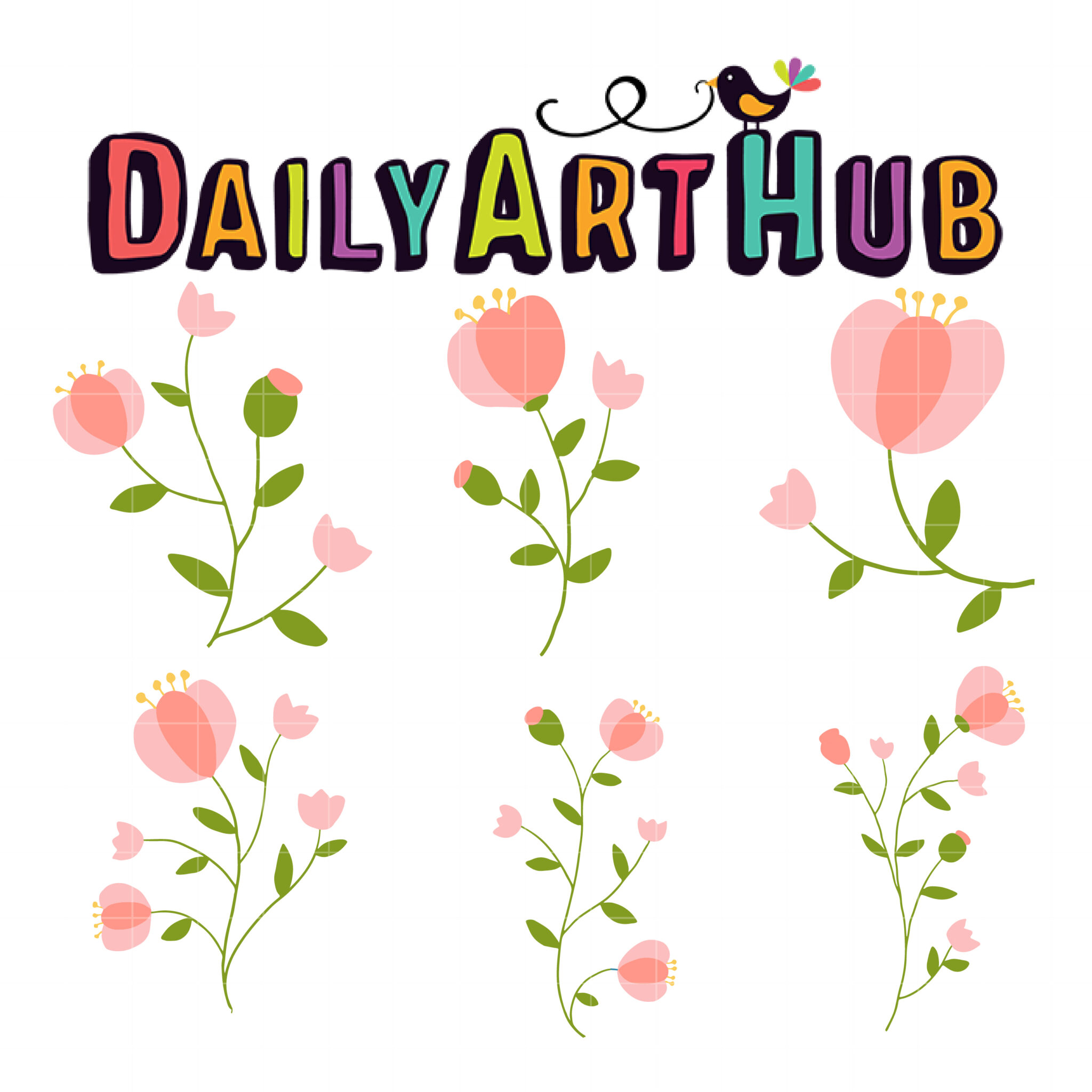 Pink Flower Set Clip Art Set