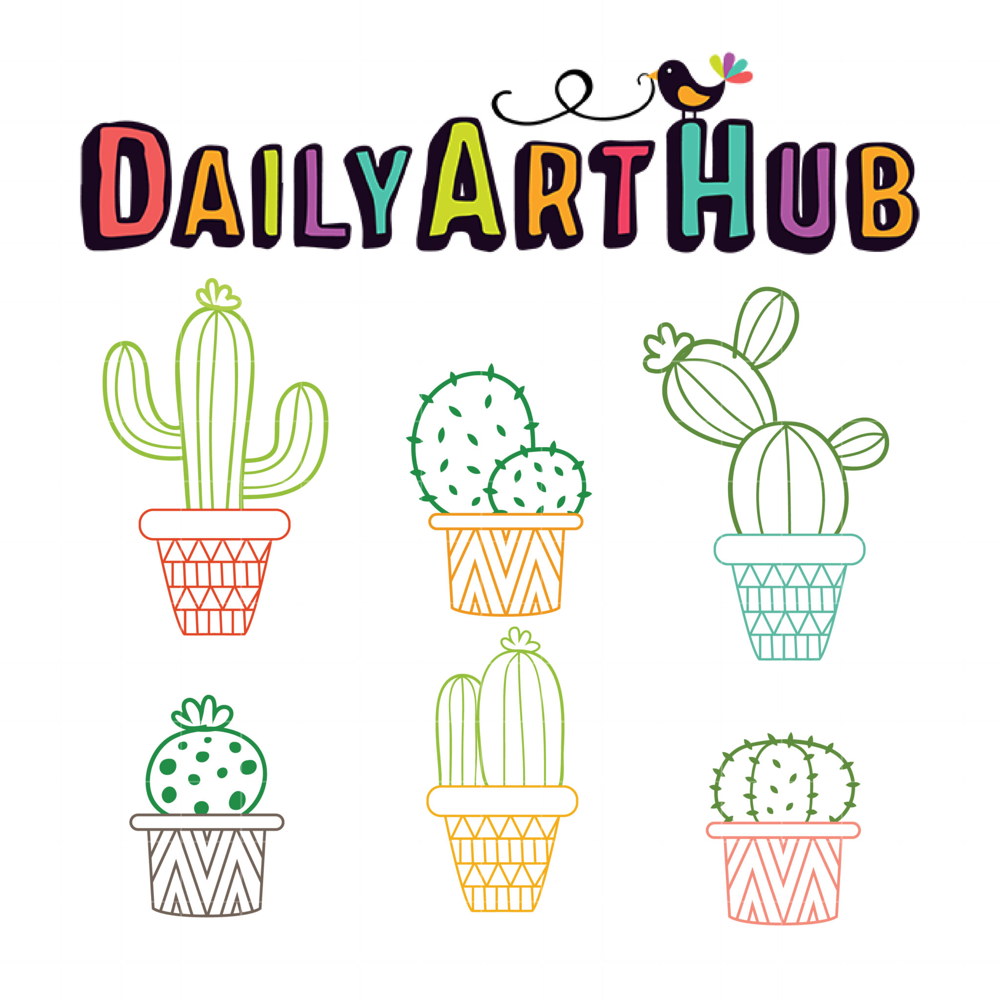 Hand Drawn Cactus Clip Art Set
