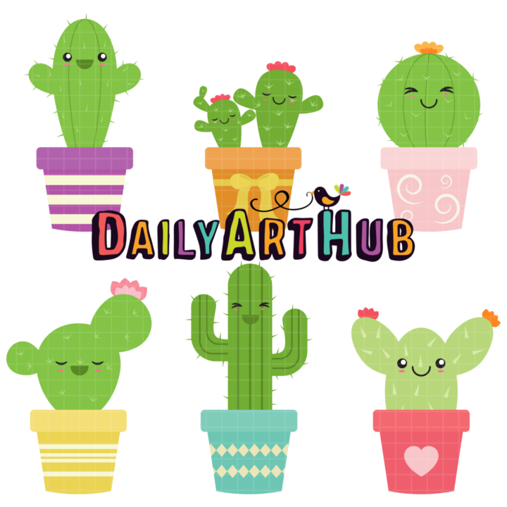 Hug Me Cacti Clip Art Set