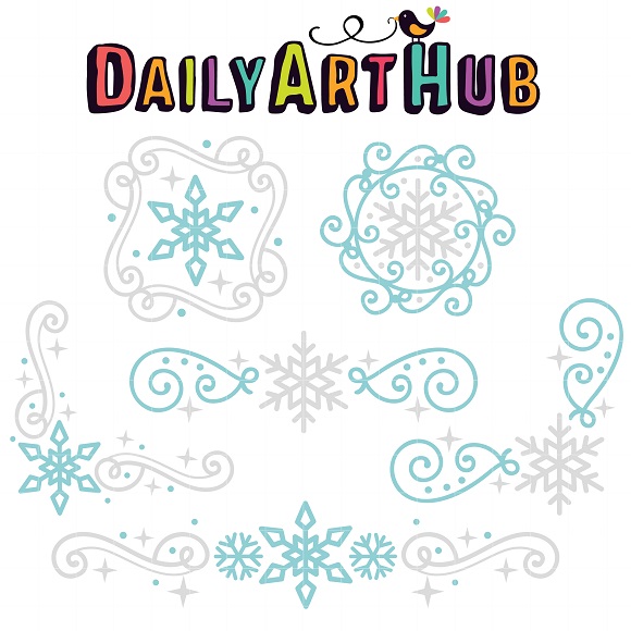Delightful set of Snow Swirls Corners and Borders