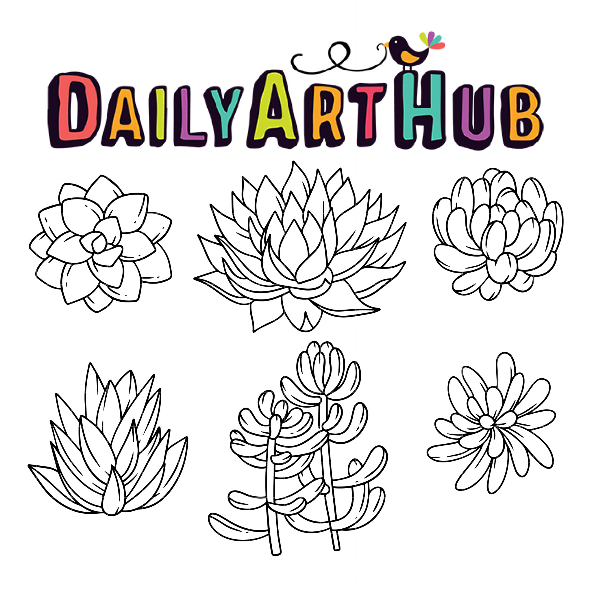Succulent Outline Drawing Clip Art Set