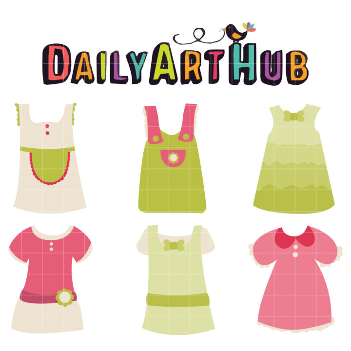 Cute Baby Girl Dress Clip Art Set