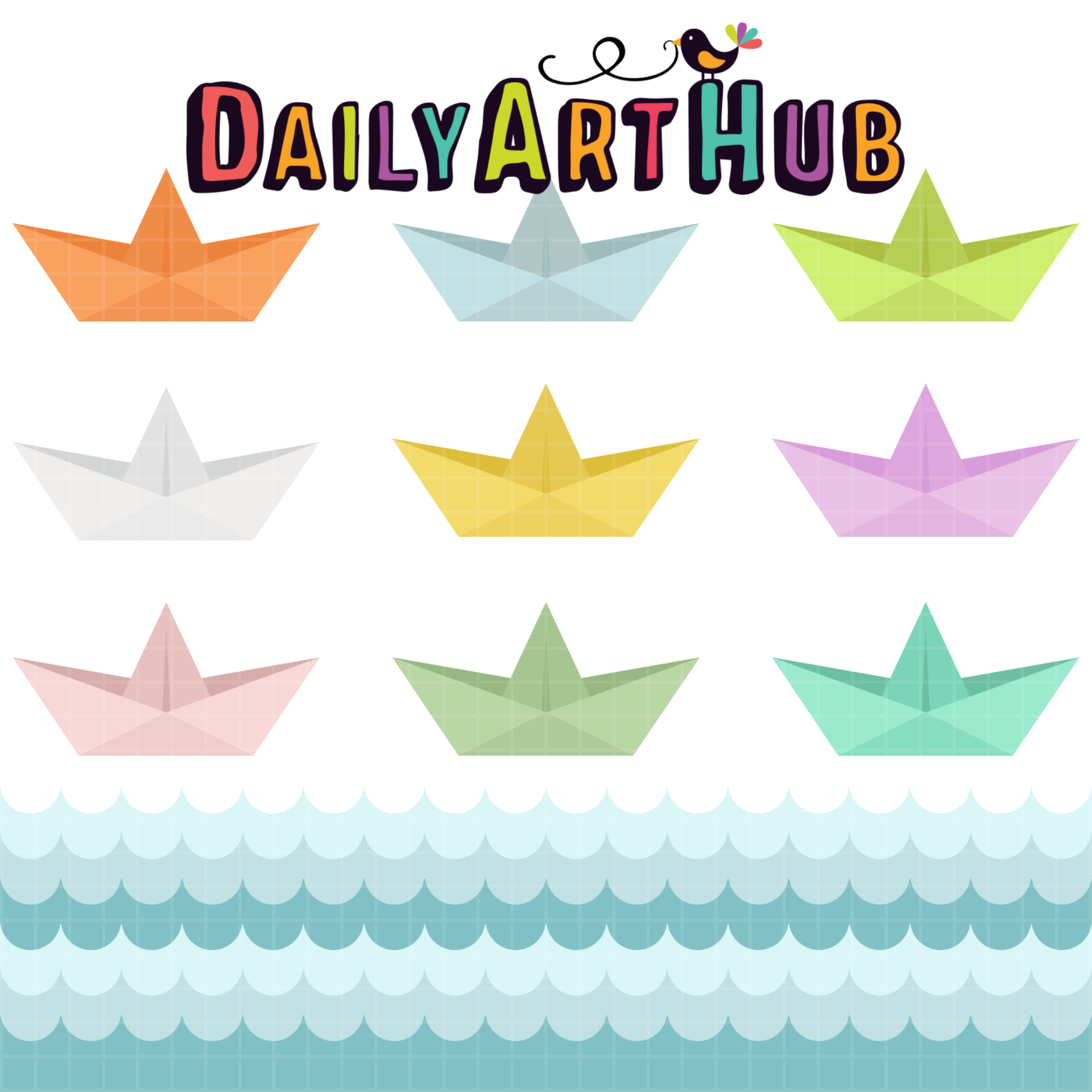 Paper Boats and Waves Clip Art Set