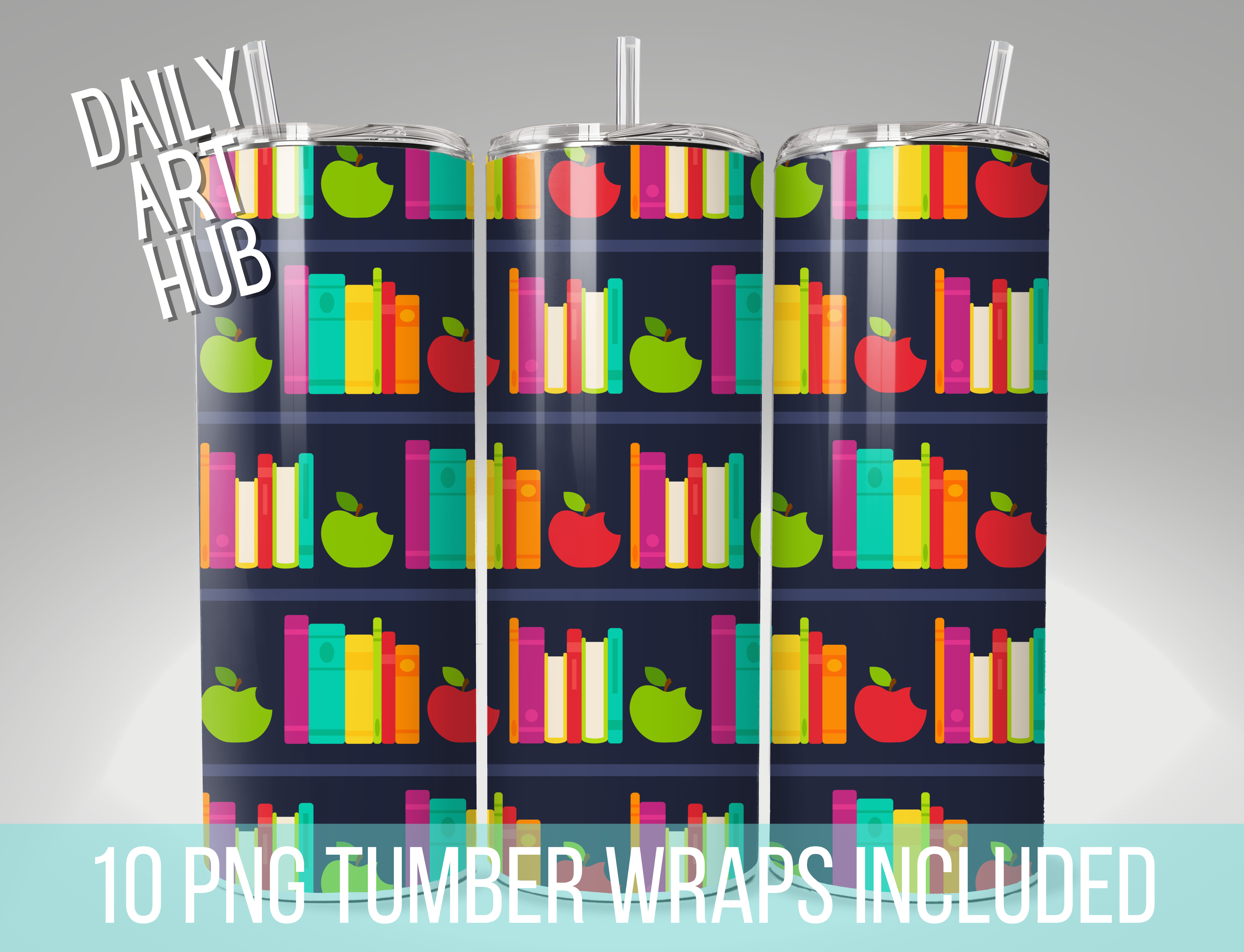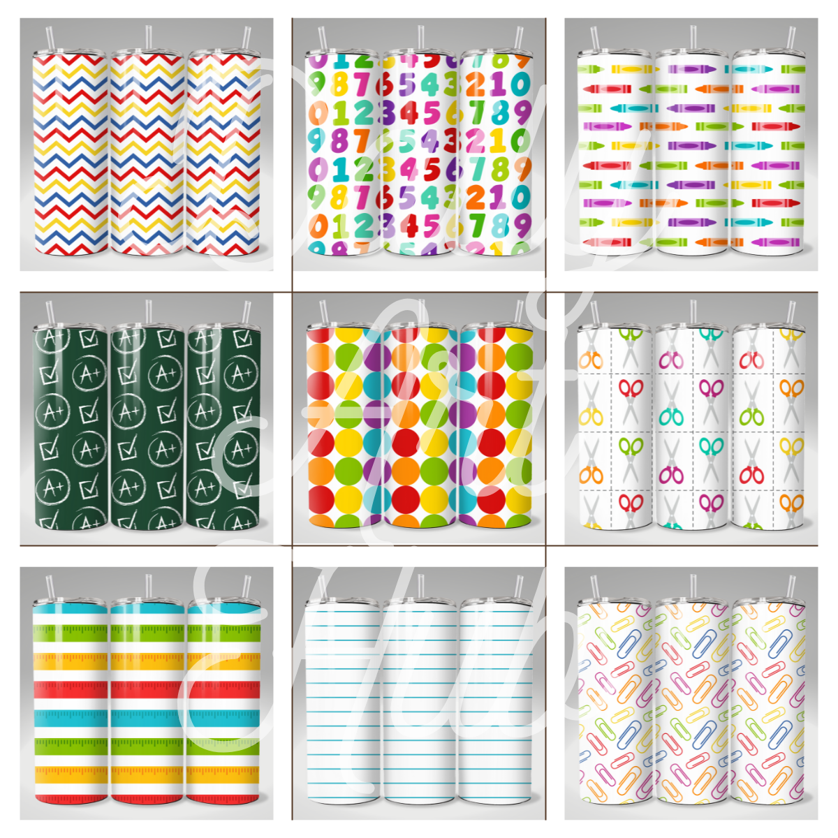 Back to School 20 oz Skinny Tumbler Sublimation Wrap Designs 10 Included PNG