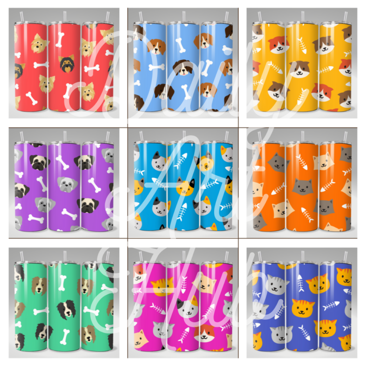 Cats & Dogs 20 oz Skinny Tumbler Sublimation Wrap Designs 10 Included PNG