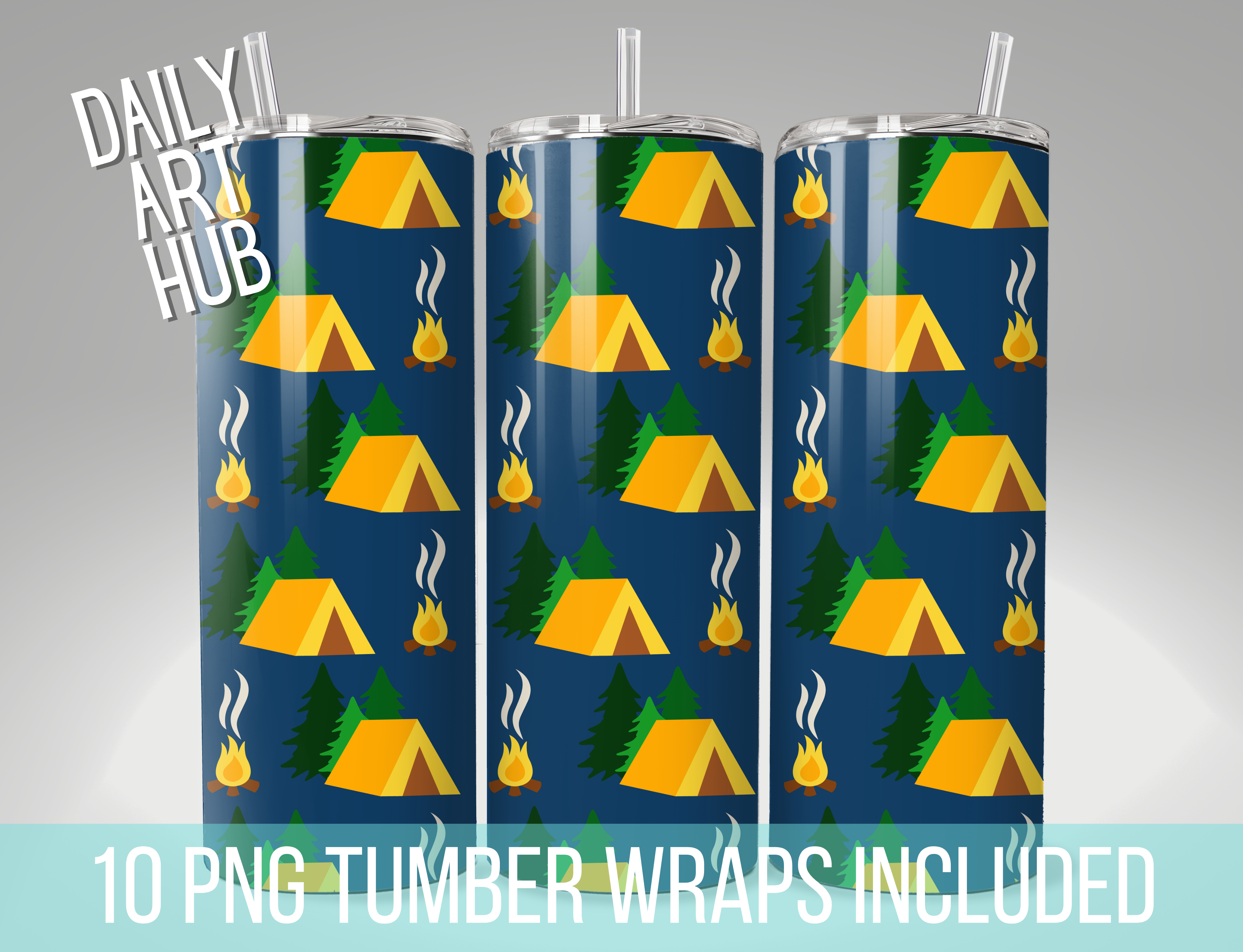 Happy Camper 20 oz Skinny Tumbler Sublimation Wrap Designs 10 Included PNG