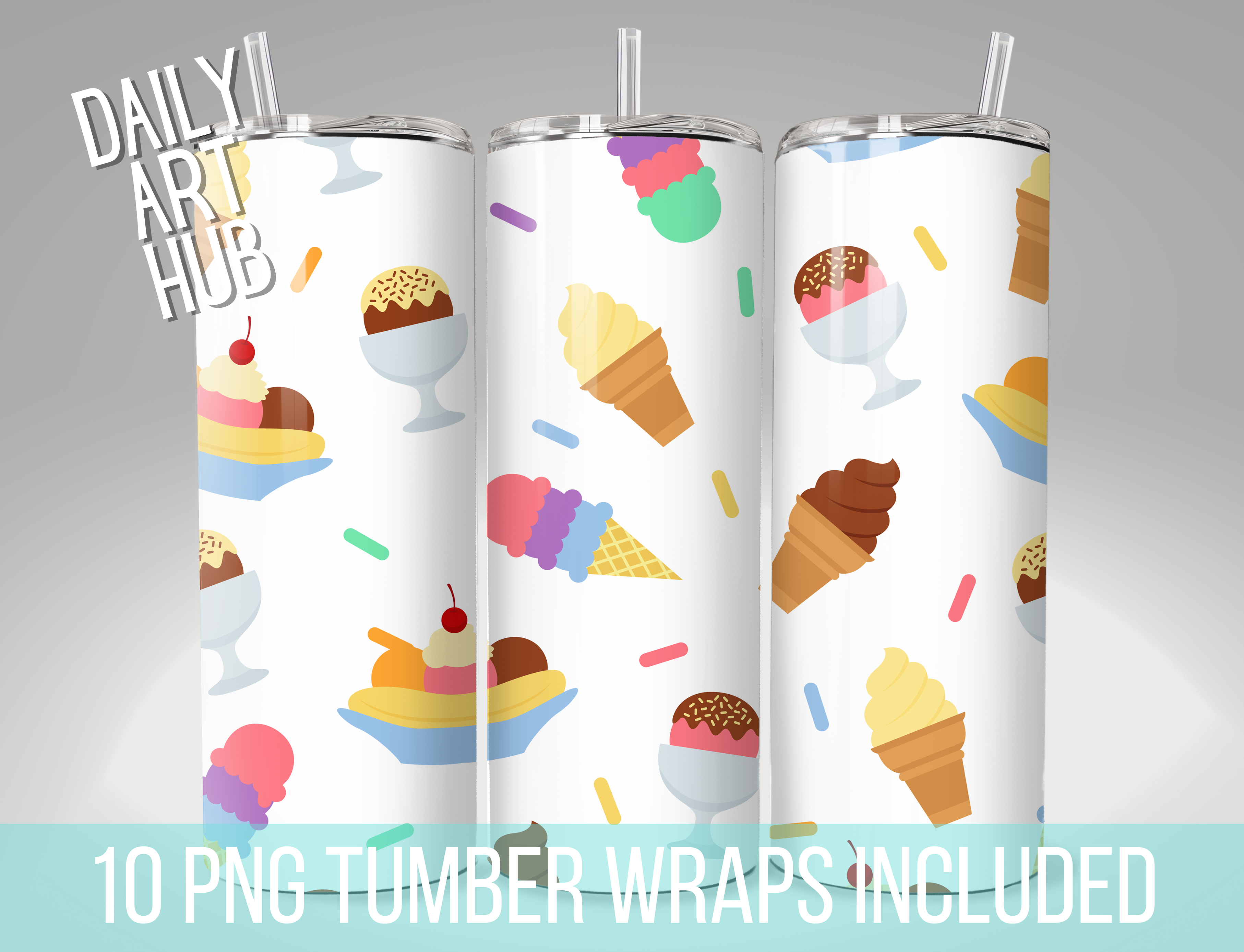 Ice Cream Shop 20 oz Skinny Tumbler Sublimation Wrap Designs 10 Included PNG