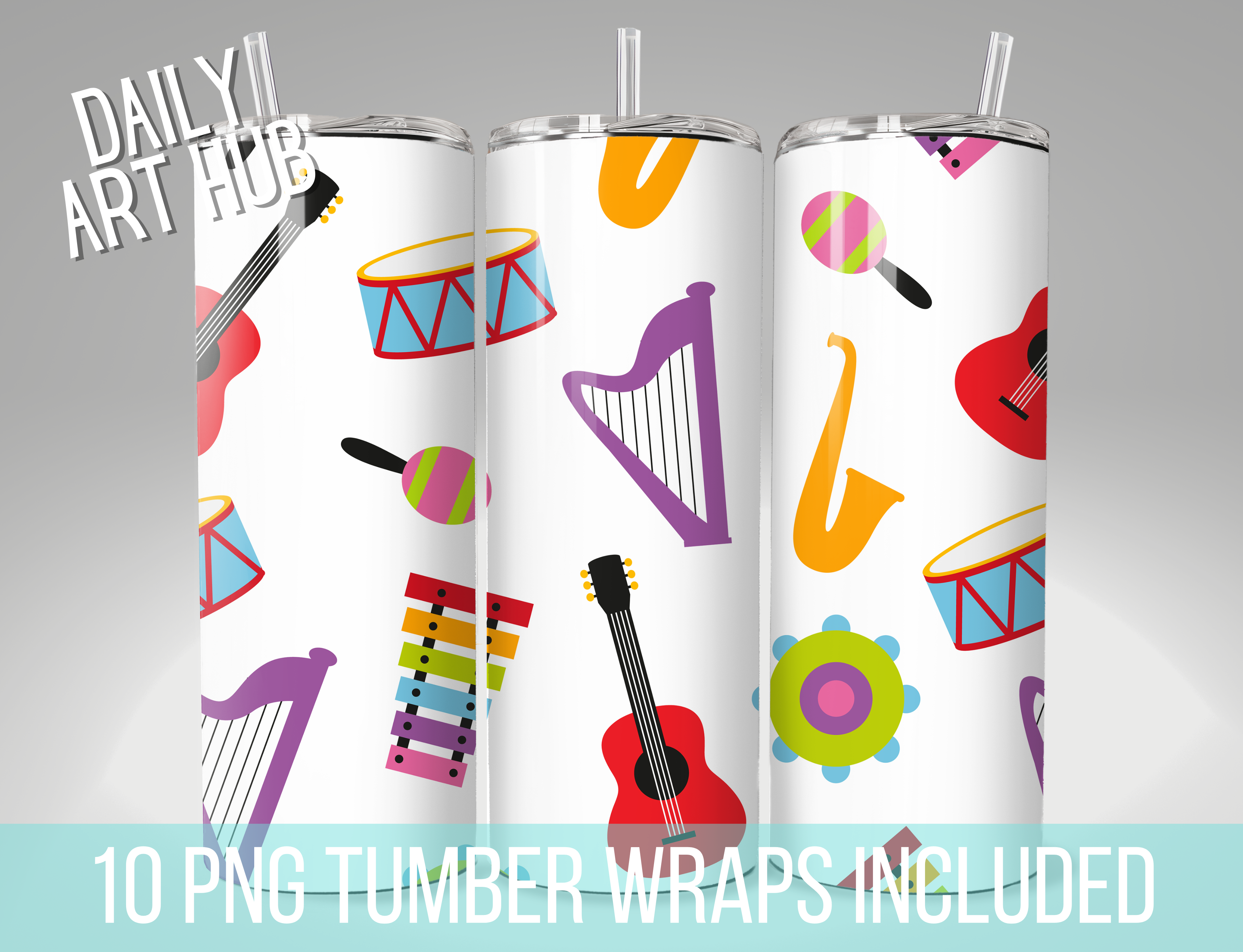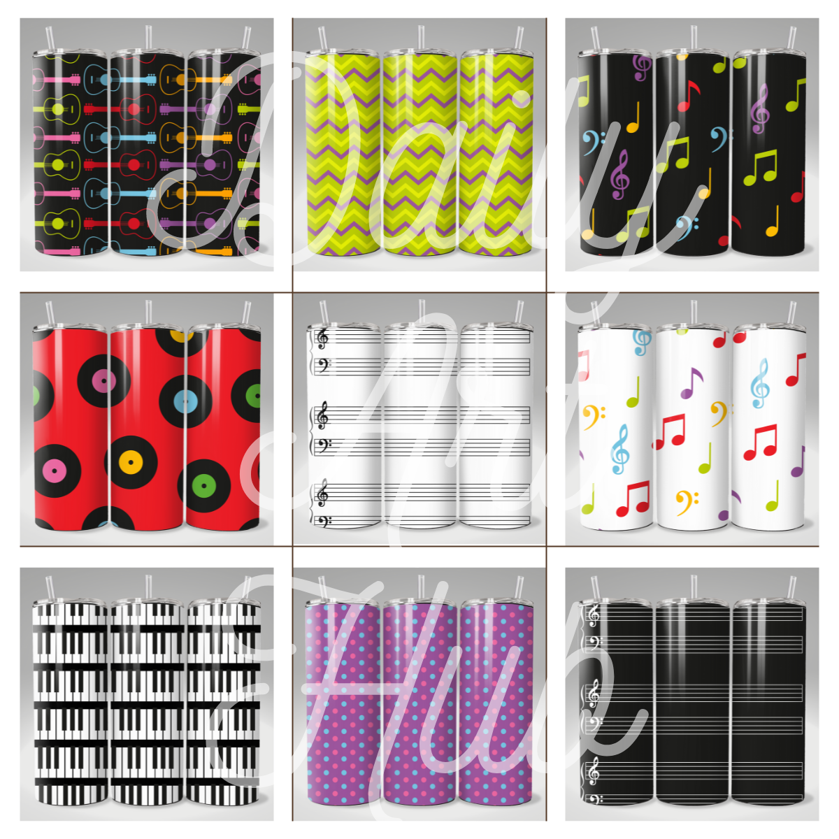 Musically 20 oz Skinny Tumbler Sublimation Wrap Designs 10 Included PNG