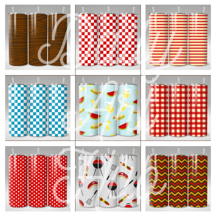 Sunday BBQ 20 oz Skinny Tumbler Sublimation Wrap Designs 10 Included PNG
