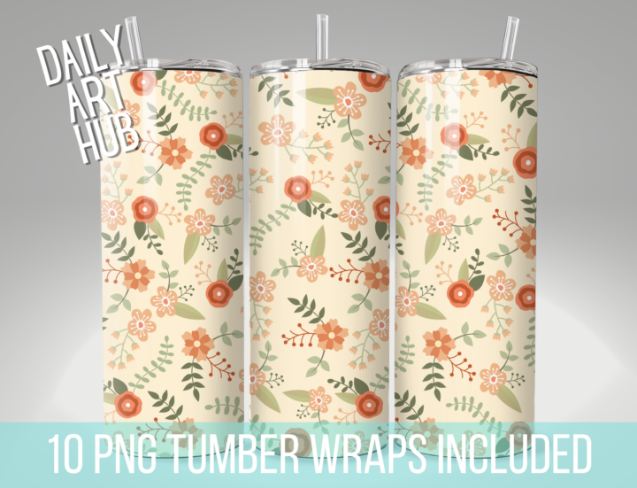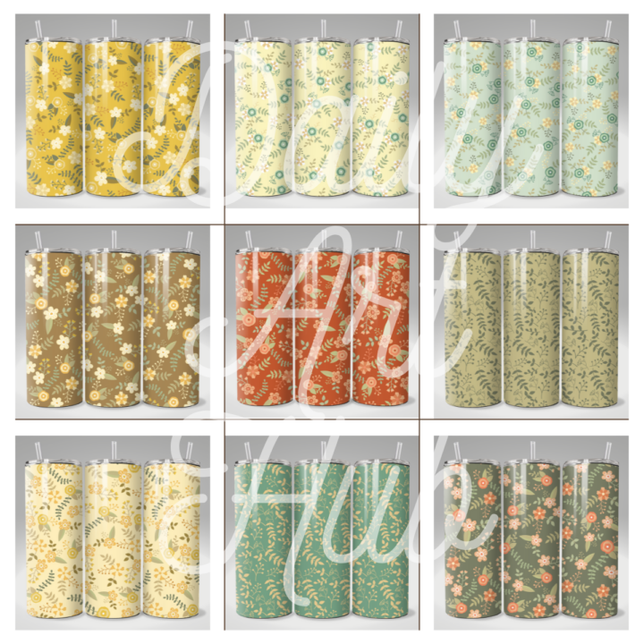 Vintage Floral 20 oz Skinny Tumbler Sublimation Wrap Designs 10 Included PNG