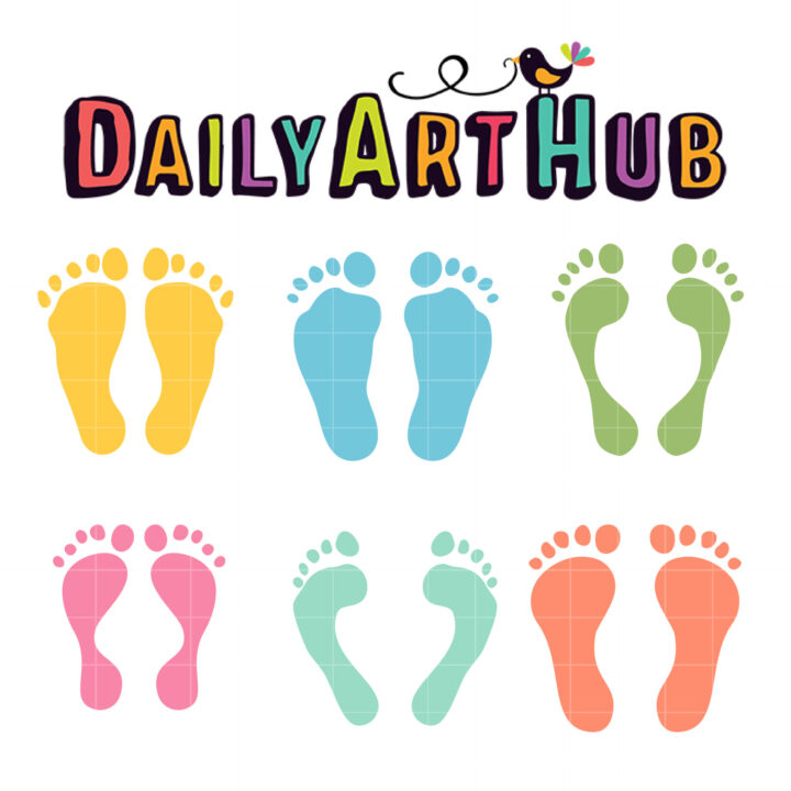 Colorful Human Footprints Clip Art Set