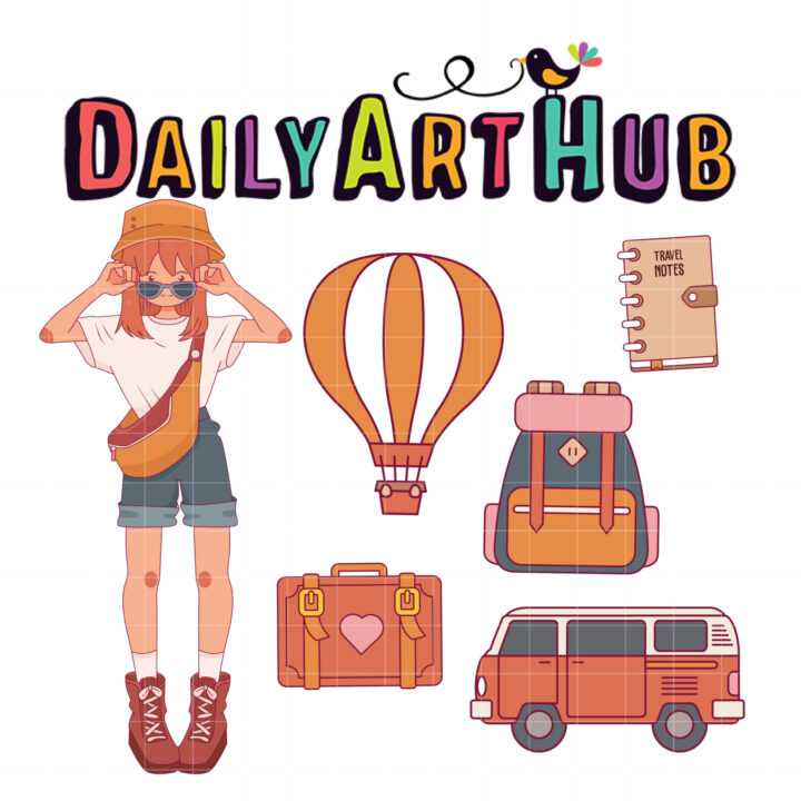 Travel Girl Sticker Illustration Clip Art Set